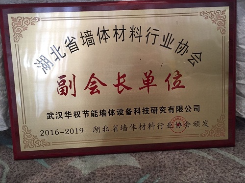 武漢達權集團(武漢華權節能墻體設備科技研究有限公司是其母公司)授予副會長單位