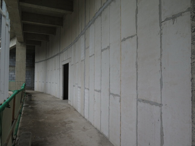 9灌漿:安裝校正好的墻板用水泥砂漿(1:2)再加建筑膠調成聚合物漿狀填充上、下縫和板與板之間的接縫,并將其木楔拔出用砂漿填平。