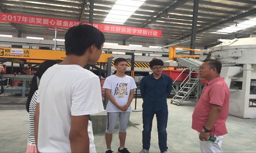董事長助理姚總為學生講解混凝土輕集料空心板生產線